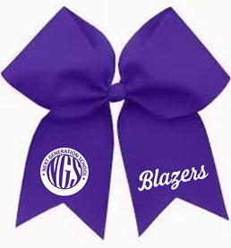 Purple bow with white NGS logo and Blazers in glitter. Pony tail style. Allow two weeks for completion.